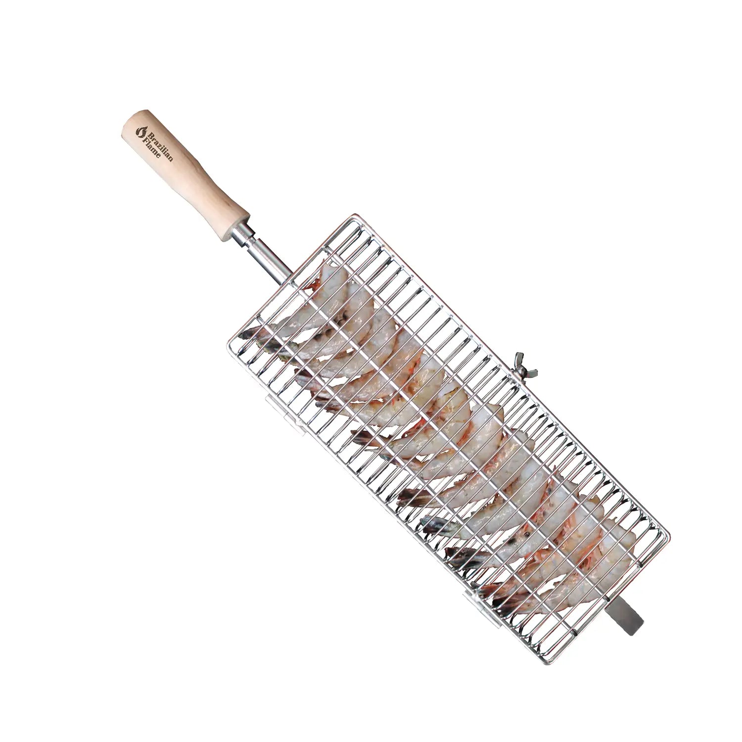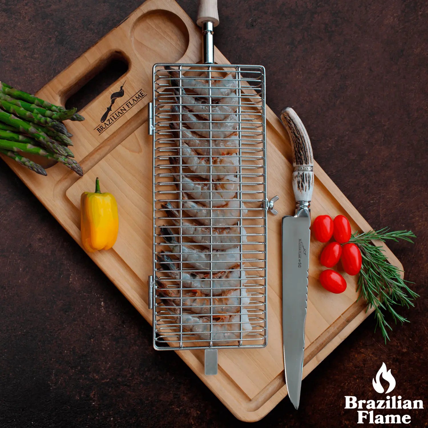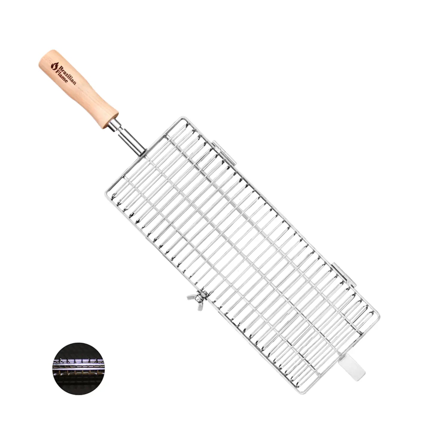 The Brazilian Flame Flat Rotisserie Grill Basket is designed to enhance your grilling experience with an authentic Brazilian touch. Crafted with precision engineering and premium materials, this flat basket redefines outdoor cooking by providing a generous cooking surface and even heat distribution for perfect results. This versatile grill basket is perfect for outdoor enthusiasts, barbecue lovers, and anyone looking to add a Brazilian flair to their grilling adventures. With its easy-to-clean design, robust construction, and user-friendly handle, it's an essential tool for creating mouthwatering dishes that will impress your guests.