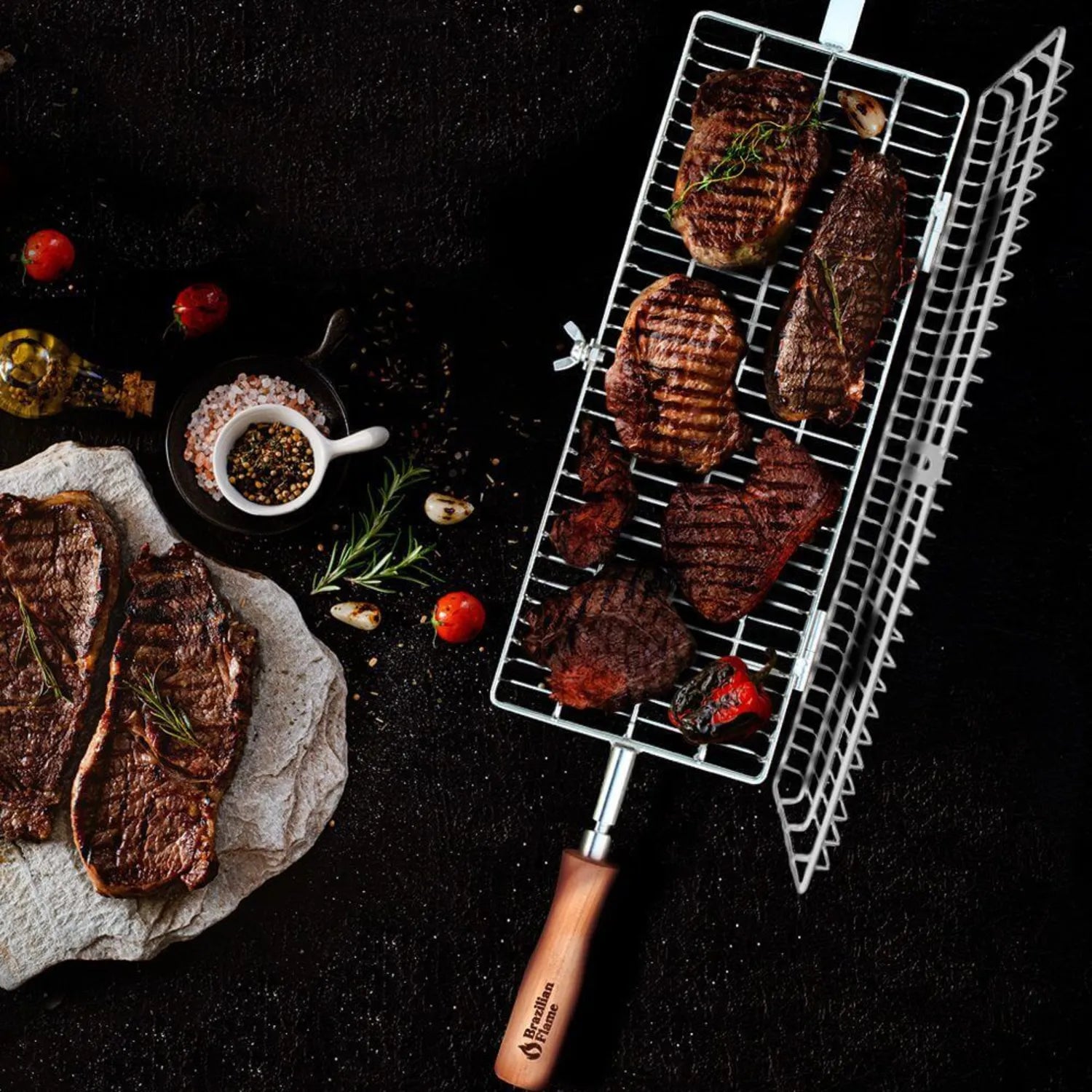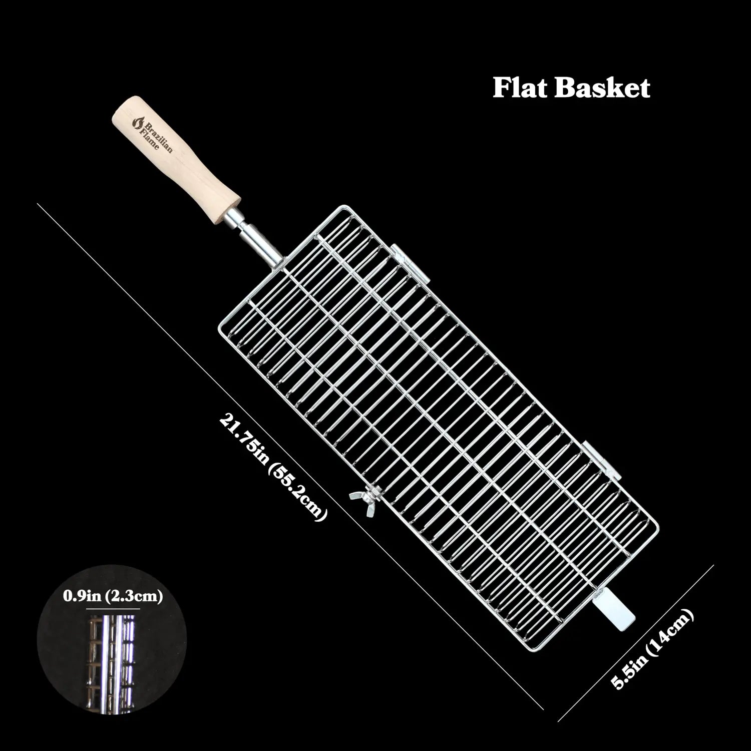 Brazilian Flame Flat Rotisserie Grill Basket - Beef & Poultry