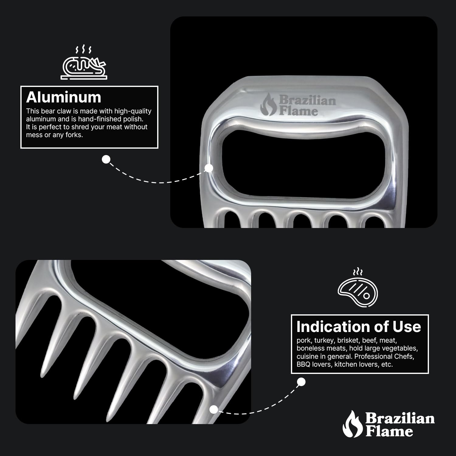 UNIQUE DESIGN: Whether you are a professional BBQ chef or just someone who likes to mess around in the kitchen, a proper bear claw is essential for your barbecue. With the unique handle design, it fits perfectly with your hands. Brazilian Flame is offering you the best and unique tools that are not only absolutely amazing for shred, lift, grasp, hold meat, but also attractive and durable.