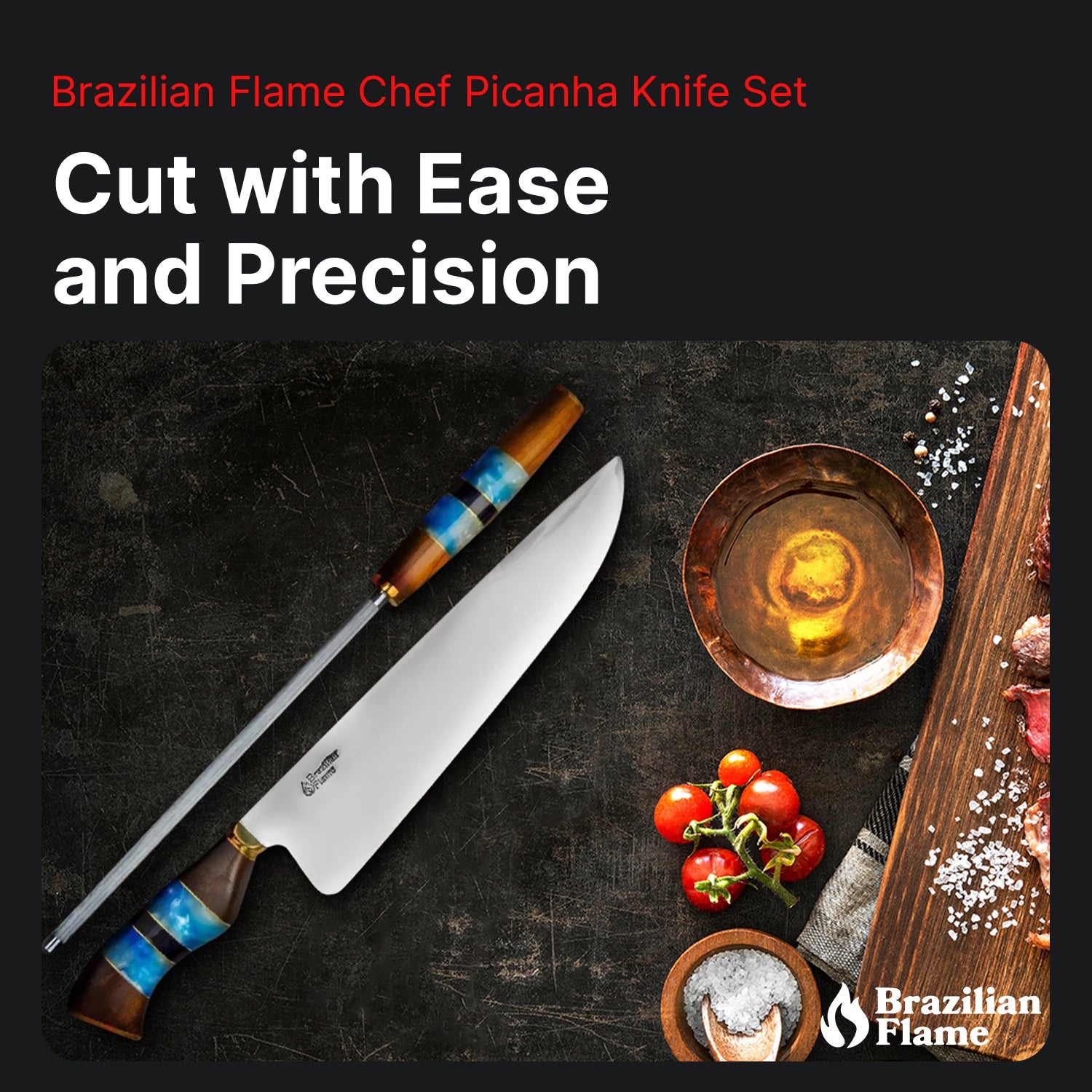 Brazilian Flame Chef's Knife - Picanha Set with Sharpener