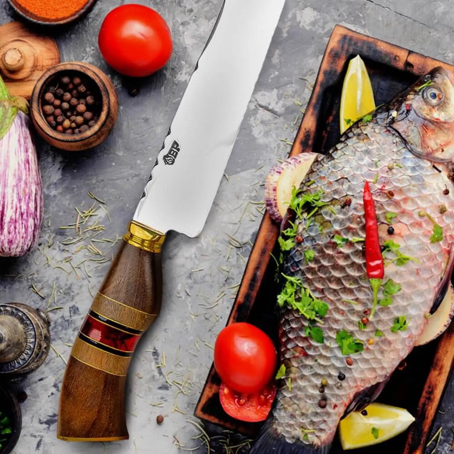 The Brazilian Flame Chef Versatile Knife is a handcrafted marvel made from premium 420c stainless steel, renowned for its military-grade strength, durability, and precision cutting abilities. This knife is designed to maintain a razor-sharp edge over extended periods, offering exceptional balance and weight for comfortable and efficient use.