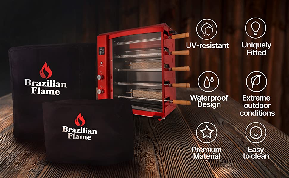 It’s simple to clean. Cleaning your Rotisserie Grill Cover is as simple as spraying it with water and letting it air dry. The Brazilian Flame Cover will complement your grill and safeguard it for years!