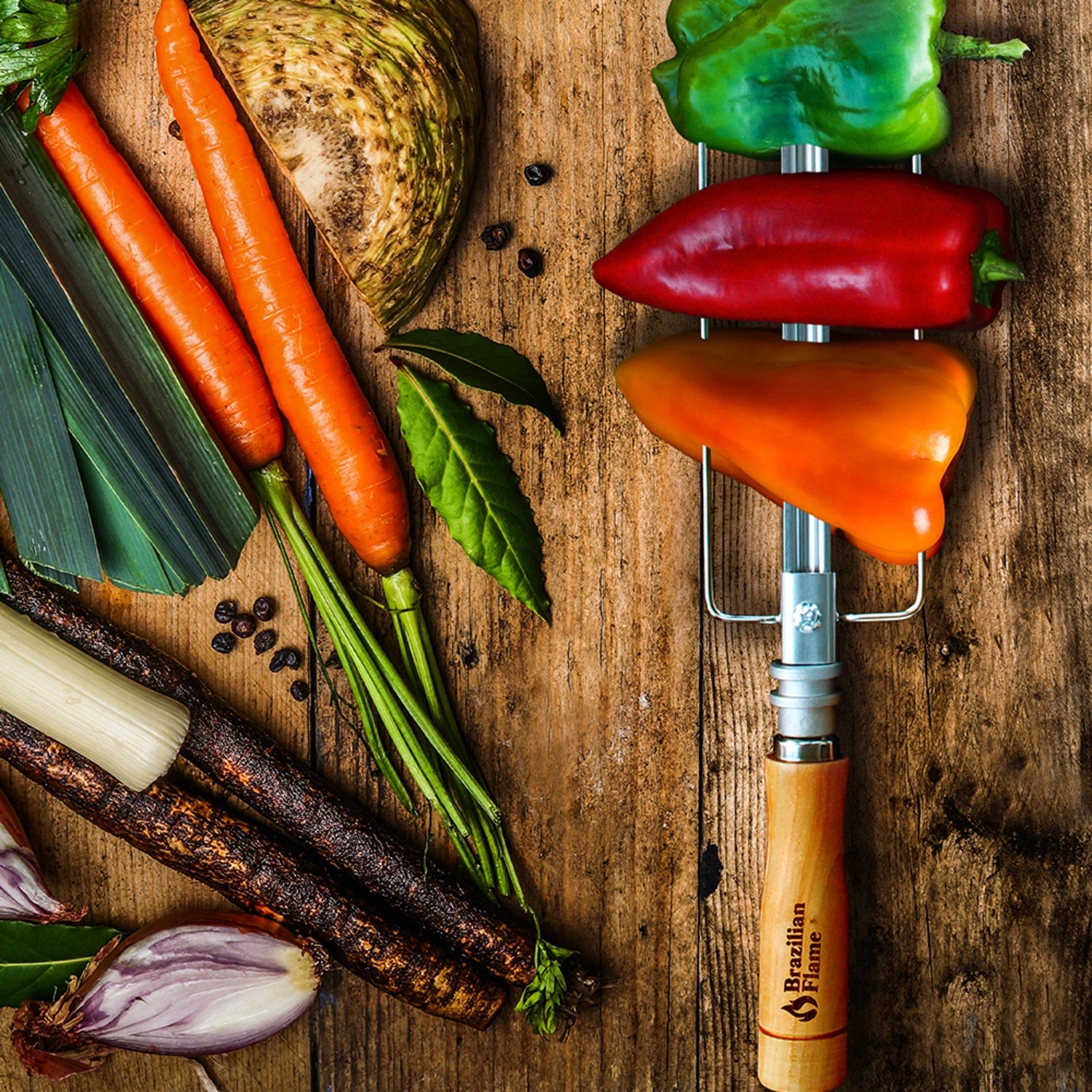 The Brazilian Flame Skewers are designed to enhance your grilling experience, offering versatility and convenience for a range of barbecue preparations. Made from high-quality stainless steel, these skewers are durable, easy to clean, and ideal for use with the Brazilian Flame Rotisserie Grill. Whether you're grilling ribs, steak, vegetables, shrimp, hot dogs, chicken, beef, or other meats and veggies, these skewers ensure even cooking and delicious results every time.