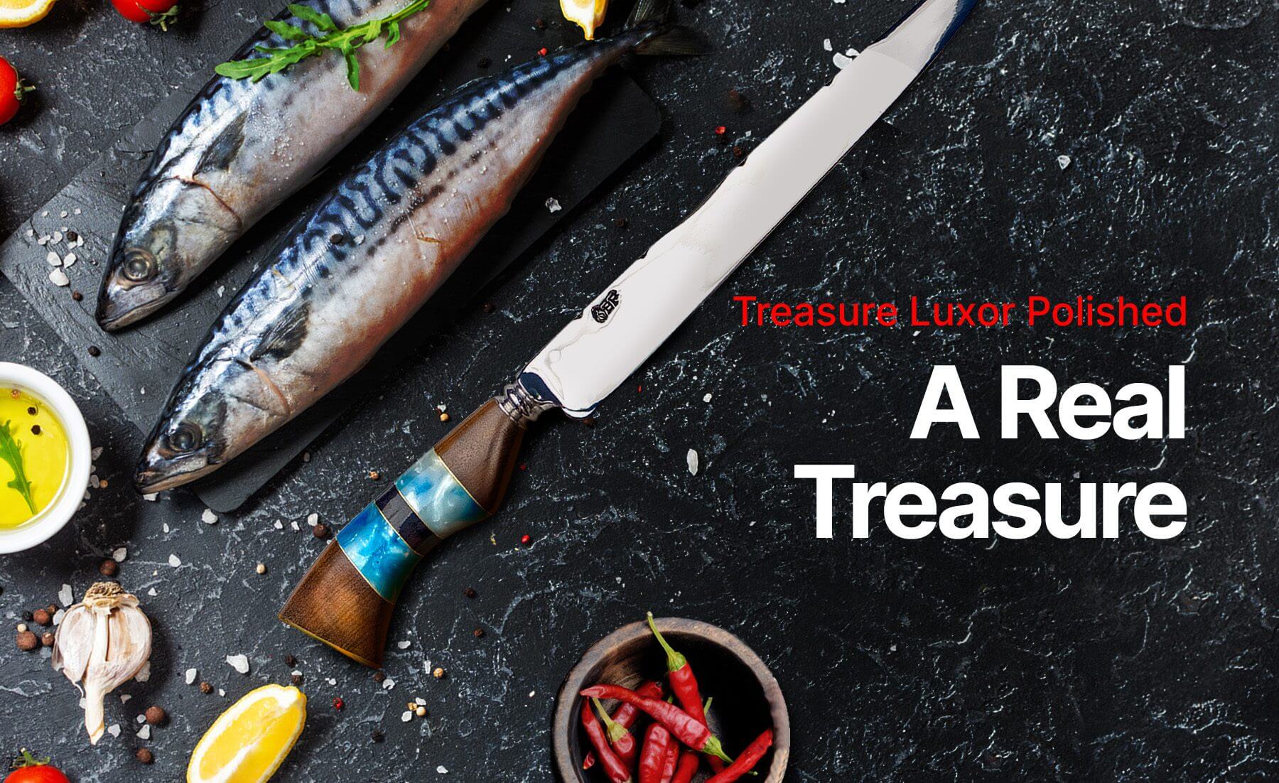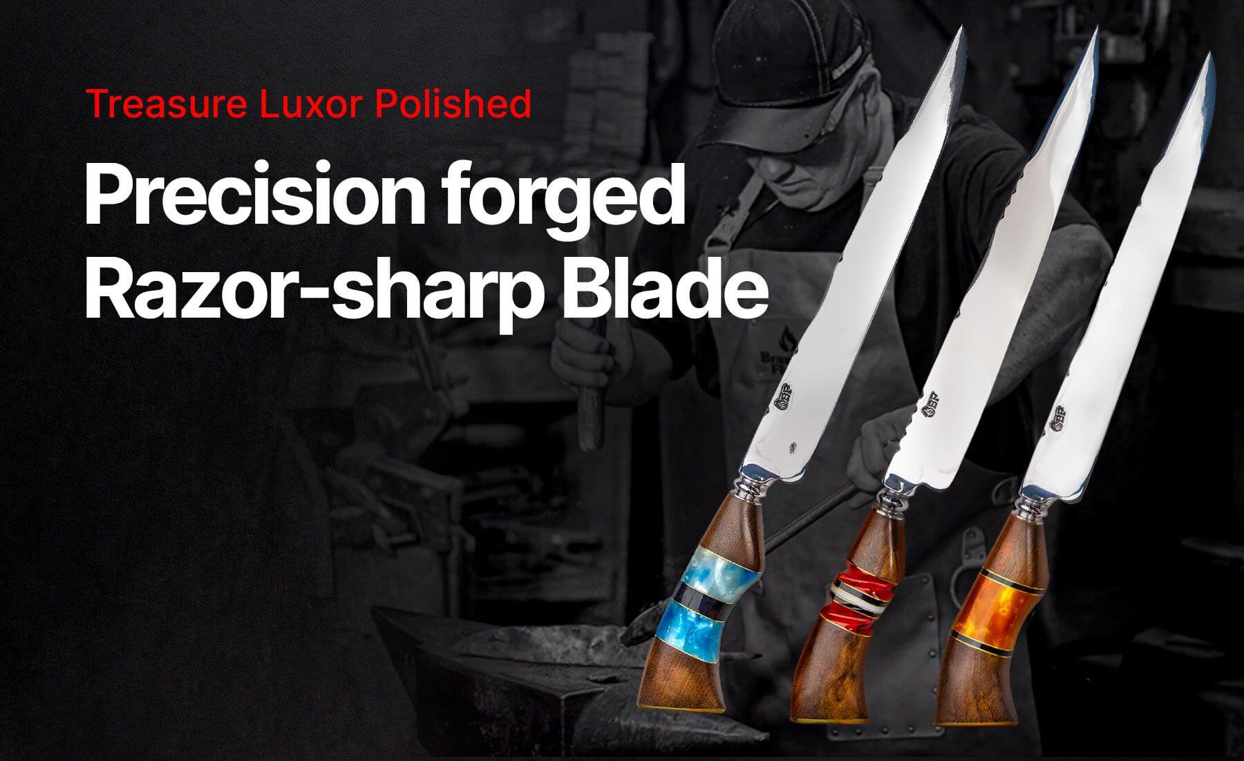 - TREASURE: This knife is made with handmade, high-quality 420c stainless steel used in surgical applications and PRECISION-FORGED razor-sharp blades. It is hand-finished to a mirror polish and provides military-grade strength, lifelong durability, precise cut, and a low level of maintenance. This knife remains sharp for a long time.
