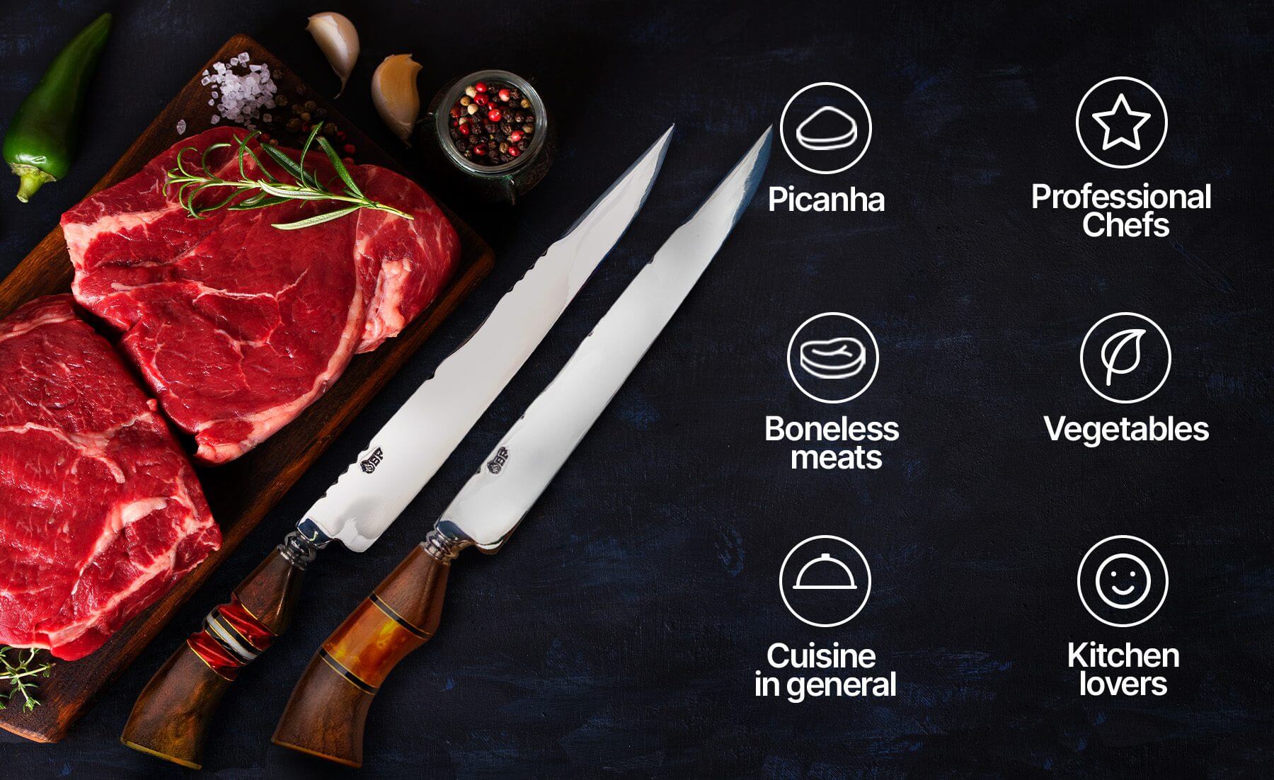 - INDICATION OF USE: Meat, vegetables, precise cuts between bone and meat, cuisine in general. Professional Chefs, kitchen lovers, Collectors, Knife Lovers, etc.